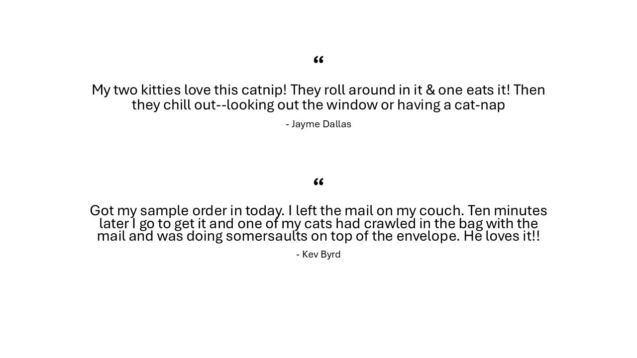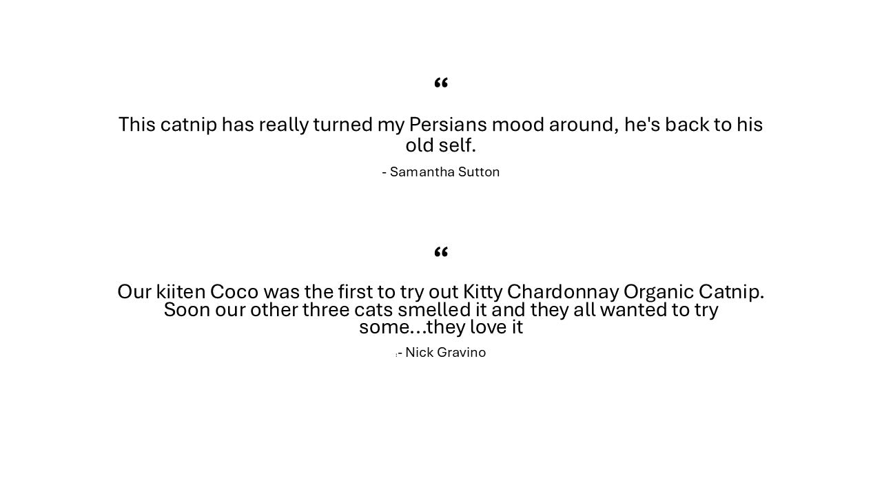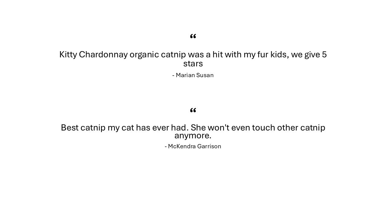Cats Favor Kitty Chardonnay Organic Cat Nip Over Other Brands and There is Reason Why! Visit our Facebook and Instagram Page. Cat Lovers, Send Us Your Favorite Feline Photo! We Want to Recognize our Kitty Chardonnay Organic Catnip Fans!